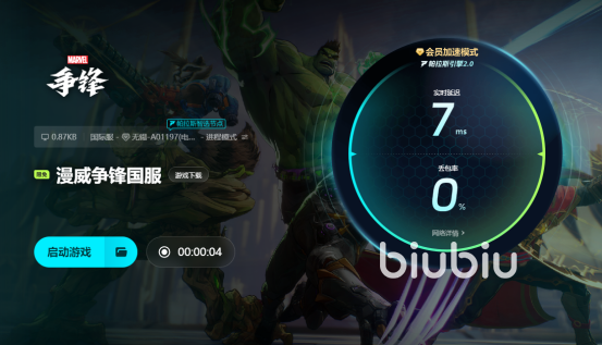 漫威争锋加速器推荐biubiu,超级专业的加速应用,简单又直观的界面让玩家有沉浸式感受,通过轻松体验加速的模式带来畅快的游戏乐趣,一键操作极速响应,让战斗变得流畅自如。