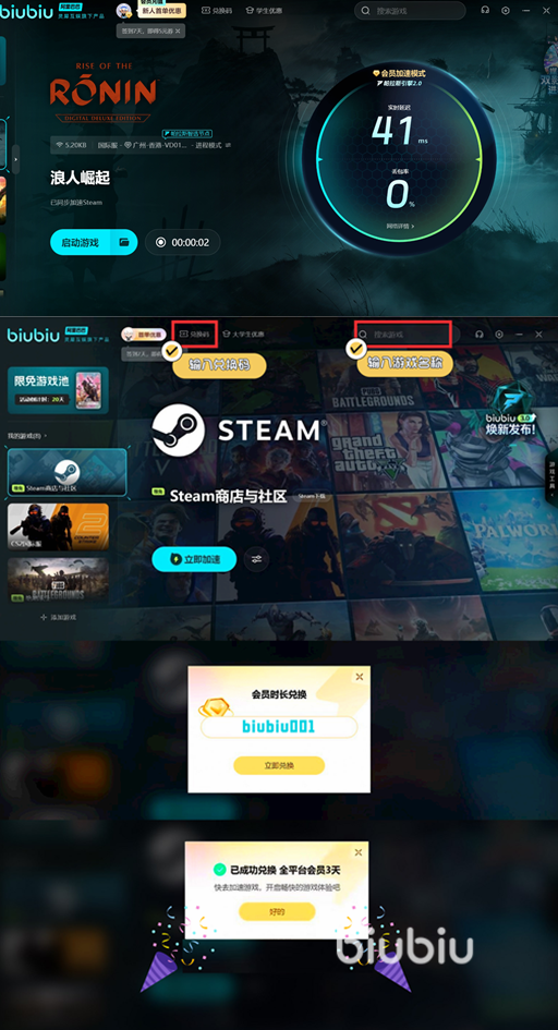喜欢这款游戏的朋友都赶紧来下载体验一下吧。为了避免在下载的过程中浪费太多的时间等待,这里就建议选择一个加速器。可以保证网络的速度,避免游戏的卡顿。biubiu加速器还有一个加速时长可以领取。所有的用户都可以通过兑换码兑换码【biubiu001】拿到一个72小时的加速时长,但如果是第1次注册,还能额外的延长3小时。如果放在一起使用就是免费75小时。