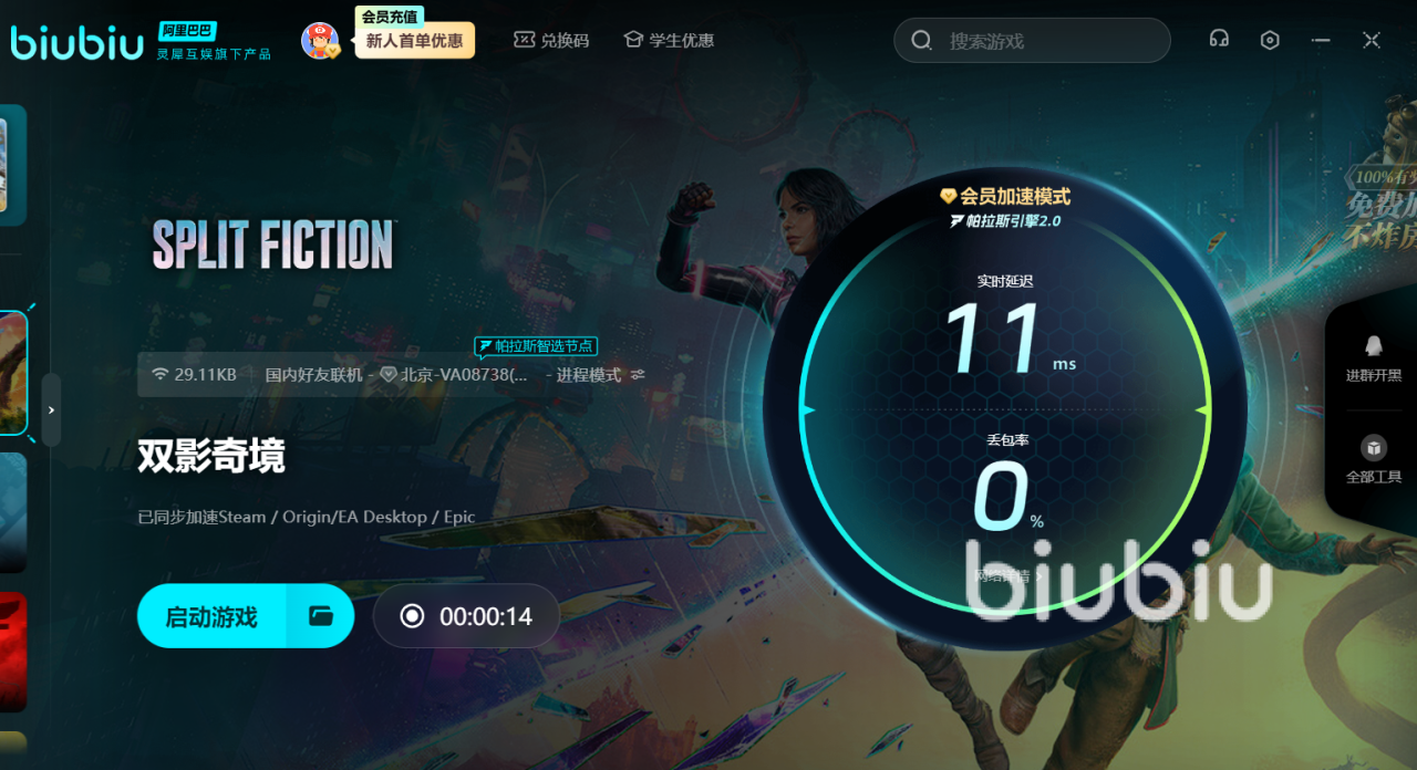 Biubiu支持PS5、Xbox、PC、手机加速,一键解决跨设备联机问题,自研引擎自动匹配最佳节点,跨区购买完全无压力的,不仅有高性价比,还有免费时长放送,输入口令【biubiu不掉线】,领取3天特权,第一次注册的时候还会额外送3小时加速,叠加后共得75小时免费时长。