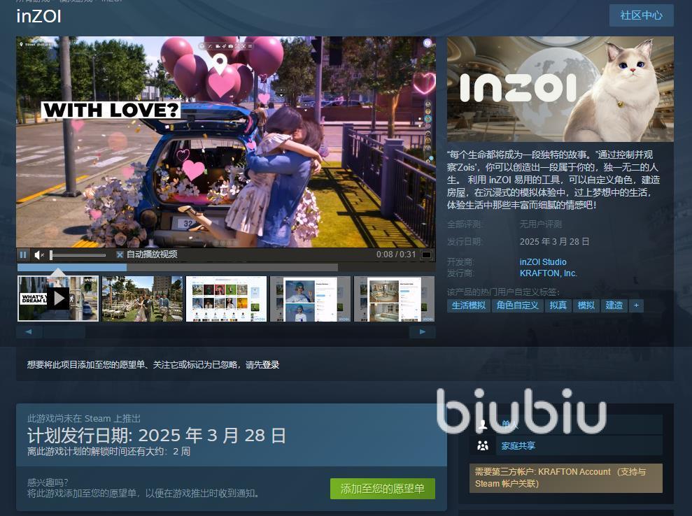 这一个游戏的上线时间是在2025年的3月28日。到时候就会登录steam平台,会开启抢先体验。这款在虚幻引擎五之下所打造的生活模拟类游戏,会有250多个角色的定制。