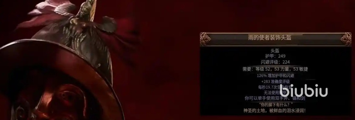 在最新一次的版本之中,装备改动还是很丰富的,比如全新的暗金装备雨的使者装饰头盔,其效果方面主要是护甲增加249,闪避评级为224,想要去穿戴则是需要自身达到52级,且有53力量和53的敏捷,主要效果为让角色单手使用双手的锤或剑,其实该装备对于泰坦等近战类角色提升还是很大的。