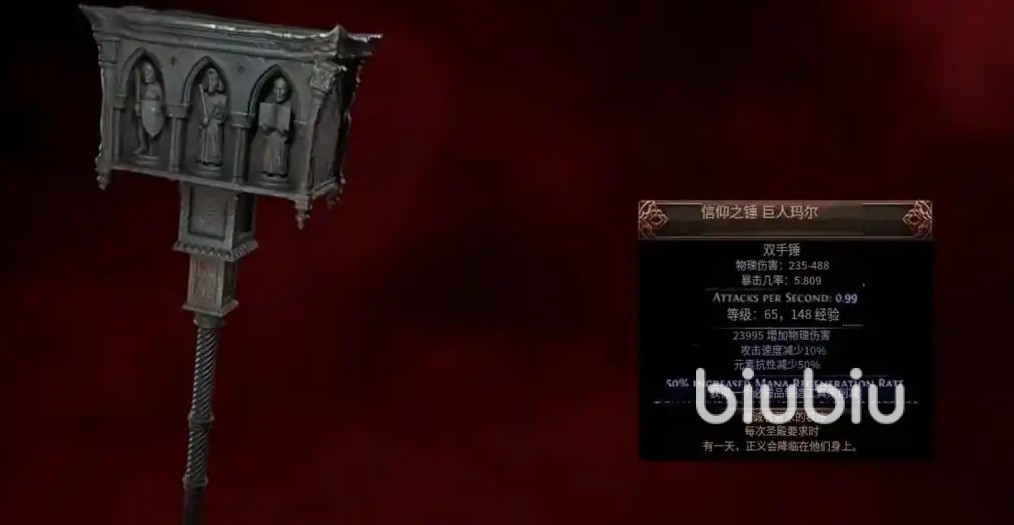 同时还有一个神殿锤,其物伤主要是在235到488之间,而暴击几率则是为5.809,需要玩家达到65级以后才可穿戴,主要是让玩家在每10秒内获得神殿效果,比如落下陨石、霹雷、给予玩家最大抗性等,而这些对于攻坚的朋友而言是个很给力的效果,能让自身到时的战斗体验效果变得更好。