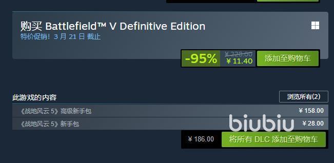 战地系列在此次的促销阶段会刷新较低的价格。战地五会打0.5折,直接11.4元,这价格基本不用考虑,直接入手就完事了,毕竟这也是当年的一款3A射击大作,10几块的价格,入手不会亏。