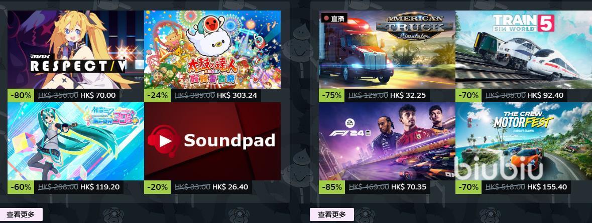 除了这些游戏之外,还有匹诺曹谎言,打75折。底特律化身为人,打折4折。双人成行25折。空洞骑士5折。神之天平八折。最终幻想七重制版5折。