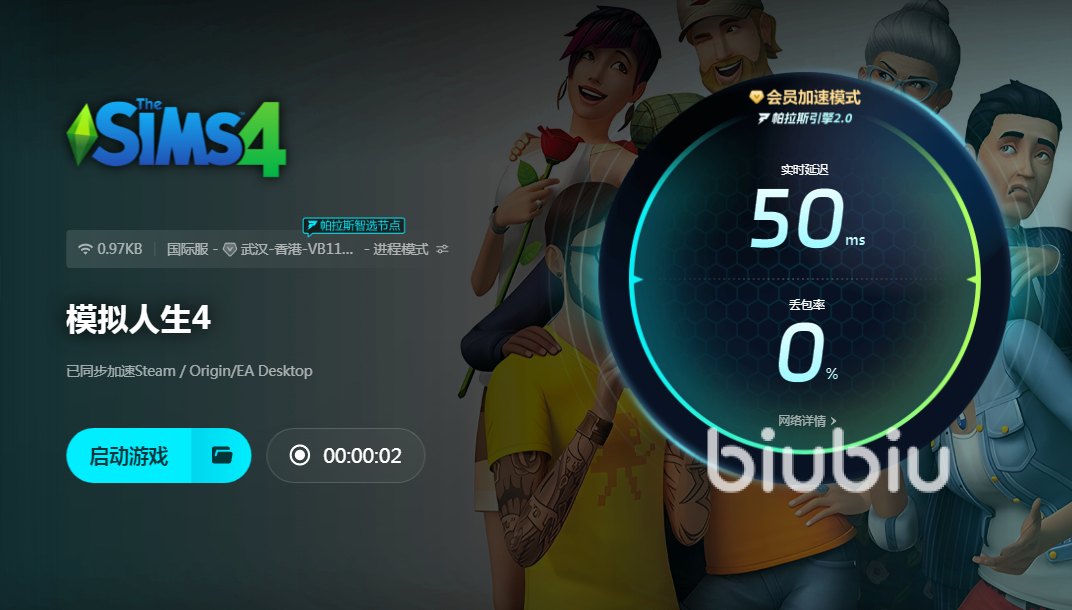 在模拟人生4中,玩家可以体验到一个自由度很高的都市生活,需要管理市民的日常起居、社交、工作、学习等,还要关注市民的快乐、专注等情绪。在建造模式中还能利用很多道具来进行房屋的自由构建。玩家在这里还能体验多种不同的职业,游戏在智能模拟方面非常出色,这里面npc都有着相对自由的意志。这些玩法固然很丰富,但是导致游戏中数据过于庞大,是导致运行过程中不顺畅的原因之一。再加上这款游戏现在已经是免费发售的,所以人气一直很高,服务器经常处于爆满状态,很多玩家自身网速也有可能出现波动或者是网速比较弱这样的情况。这些都会导致掉帧。至于解决的方法,小编建议直接使用biubiu加速器。