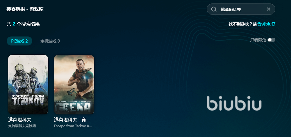 除了逃离塔科夫之外,biubiu还能加速上万款游戏,这些资源在软件里根据游戏名就能搜索到。为了回馈广大用户,biubiu准备了一个限免游戏池,里面的资源都是免费加速的,不用充值会员就能加速游戏畅玩,想想就觉得很痛快呀。