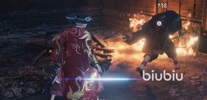 另外这个攻击还可以减少敌人的精力,同时恢复我们用出来紫电效果消耗的精力。这个切换手感是要抓好的,手抬起来的时候就切,这样转身动作就很流畅了。