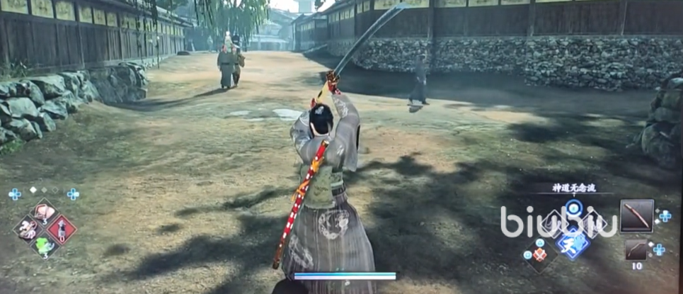 Step 2:在第三段刀刃触敌瞬间:按住R1(防御键)保持架势稳定,右摇杆快速向右滑动(触发流派右切);