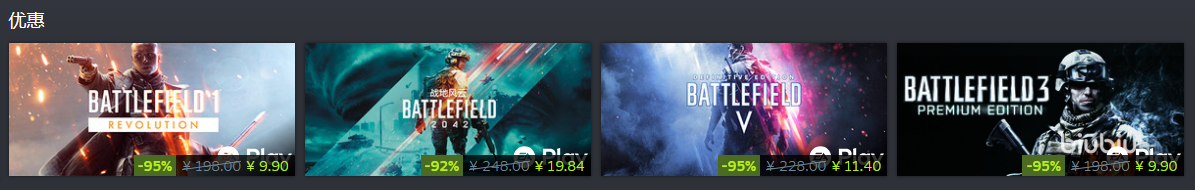 特色:包含全部DLC的警匪对抗FPS,多人模式体验拉满。同时好价折扣的还有其他全线的《战地》系列,《战地1》《战地3》《战地5》《战地2042》。