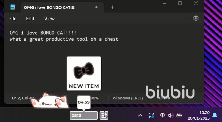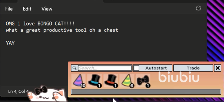 总之,邦戈猫BongoCat玩法指南就为大家介绍完了,它就是日常办公/娱乐的趣味桌面伴侣,敲字小猫和视觉小说/金山打字/点击游戏/键盘工作者更配哦,动一下敲一下爪爪也太萌了,还有人类无法拒绝的抽奖系统,堪称打工人的福利,做文员的必备神器!喜欢的话就快去获取吧。