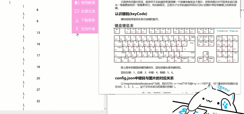 想要定制键盘设置,或者多键位映射,是一个复杂的代码修改流程,需要打开素材文件夹(路径如 D:\bango cat\img\standard\keyboard),记录图片编号与键位对应关系。然后编辑 config.json 文件,根据键值表调整数字代码,实现自定义键位。设置好后保存在本地文件即可。