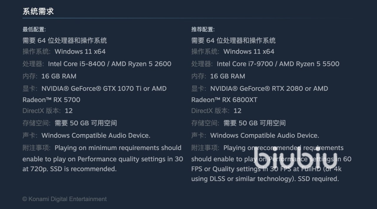 对于想要畅游这款恐怖动作游戏的玩家来说,配置要求自然是一个重要的考量因素。《寂静岭F》的最低配置要求已经相对较高,需配备Windows 11 x64操作系统,拥有16GB RAM,等硬件配置。更详细信息请看下图: