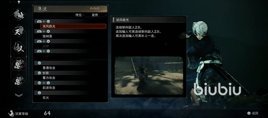 首先是流派熟练度提升,每个流派(如隼义经流、伊贺流等)均有对应的武技,通过战斗频繁使用流派技能可提升熟练度。当熟练度达到一定等级后,部分武技会升级为“奥义”。比如隼义经流的奥义需先习得该流派,并通过后续挑战强化。