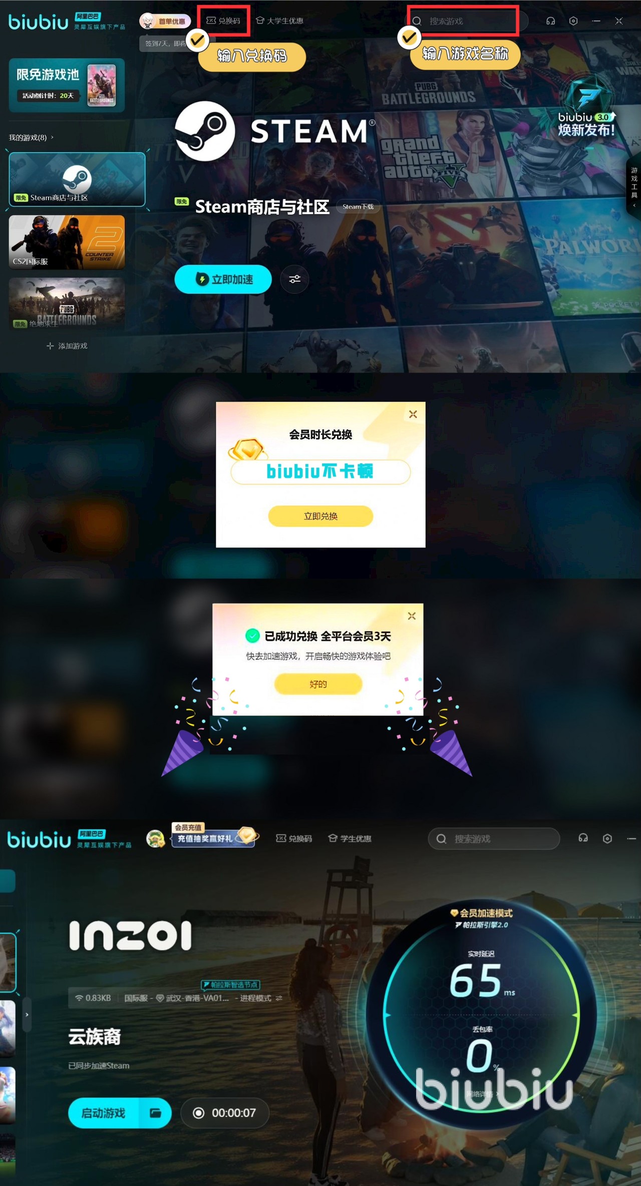对于追求流畅体验的玩家,biubiu加速器推出了有效的优化方案,其中的智能节点功能,可以自动匹配低延迟节点,之后就算在30人同屏的节日庆典场景中,游戏仍能保持60帧稳定运行。此外平台还安排了很多福利,便于大家去试用,比如新人注册即可领取3小时免费加速时长,所有用户输入兑换码【biubiu不卡顿】还能再获3天加速福利。