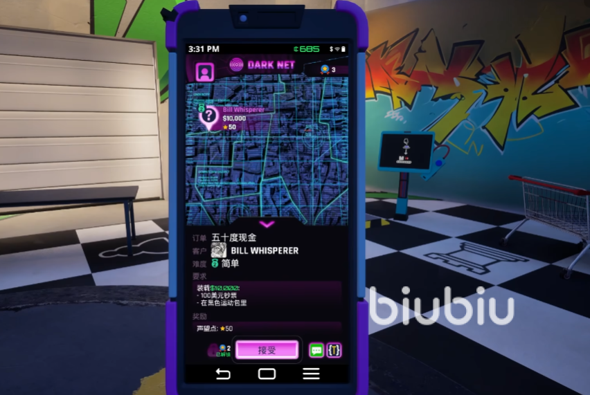之后我们可以细细了解一下该大作的具体玩法,登录进去之后就可以发现自己以第一人称视角操控自己的角色。并且黑帮大佬会通过手机短信的方式将任务内容发送至我们身边,这时我们就要根据他的要求去将身边的钱给洗掉。