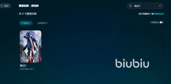 鬼泣5掉帧本以为解决方法较为困难,不曾想使用biubiu就能有效改善并解决,支持上千款热门游戏作品,无论是海内外热门还是小众都能在线搜索,当遇到搜索不到的情况可寻找客服来解决。