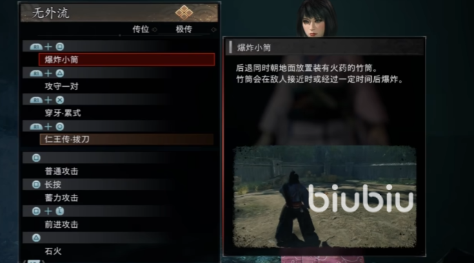 它可以搭配爆炸小筒打伤害,然后立马接上烈风,切换到爱洲阴流,一套输出完了之后接闪刃回精力,回好了之后用血洲打处决效果,接一个朱殷之光打敌人让其进入硬直,切回常用流派尽情输出就行了。