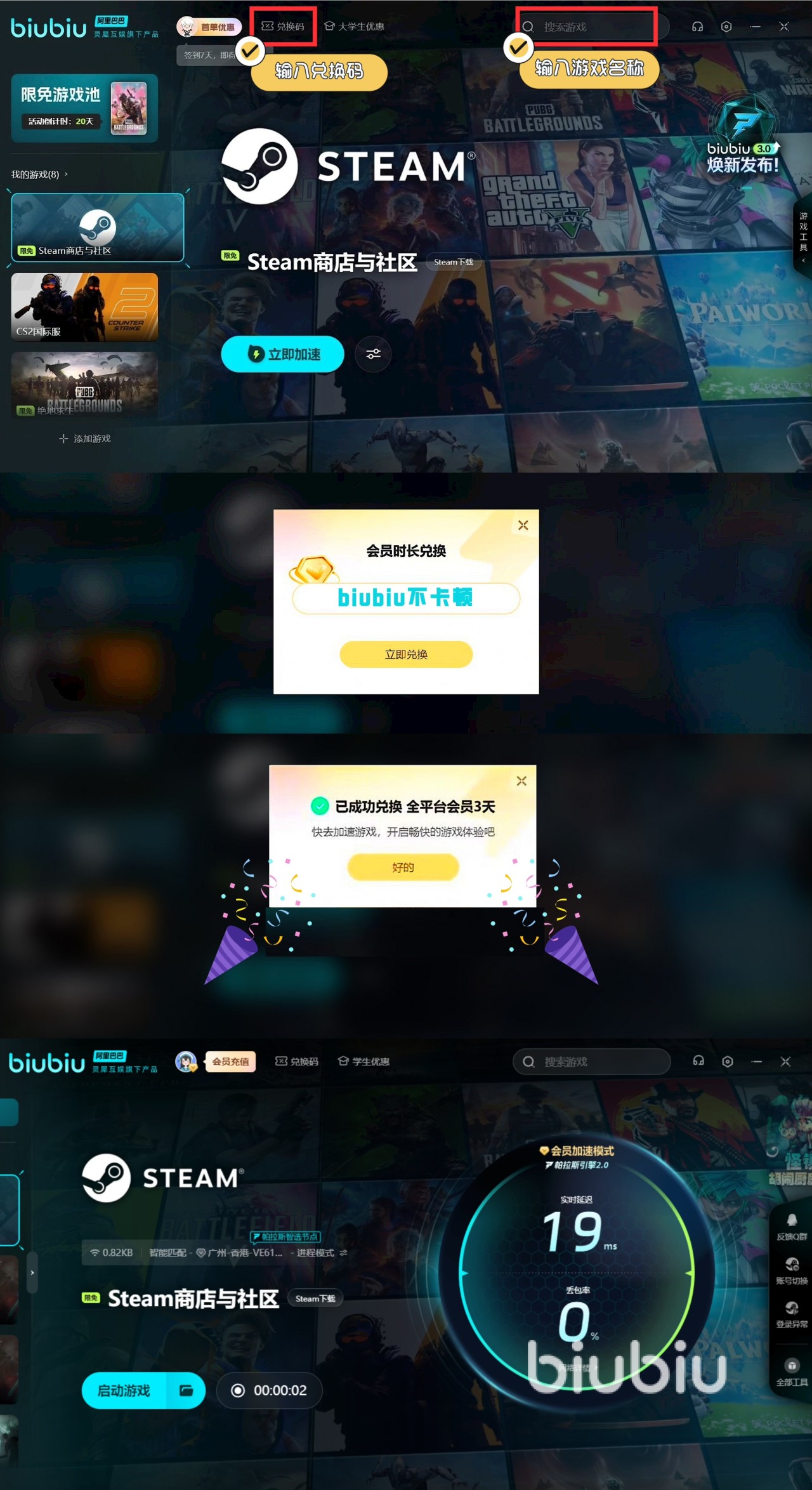 在注册之前,大家肯定要先下载该大作。我们可以先用biubiu为Steam提速,如此就可以在这个平台中快速下载宝可梦传说Z-A,避免失败。新用户的话可获得3小时的免费加速,另外新老用户输入【biubiu不卡顿】,就能额外获得三天免费加速。