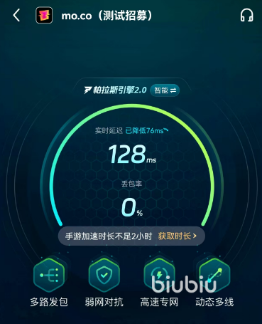 现在这款游戏还在研发以及内测当中,现在biubiu是已经给其测试招募通道提供了加速服务了,可以看下效果,延迟是降低了很多的,少了76ms呢。咱们就可以利用这个功能,赶紧去申请测试资格哦。