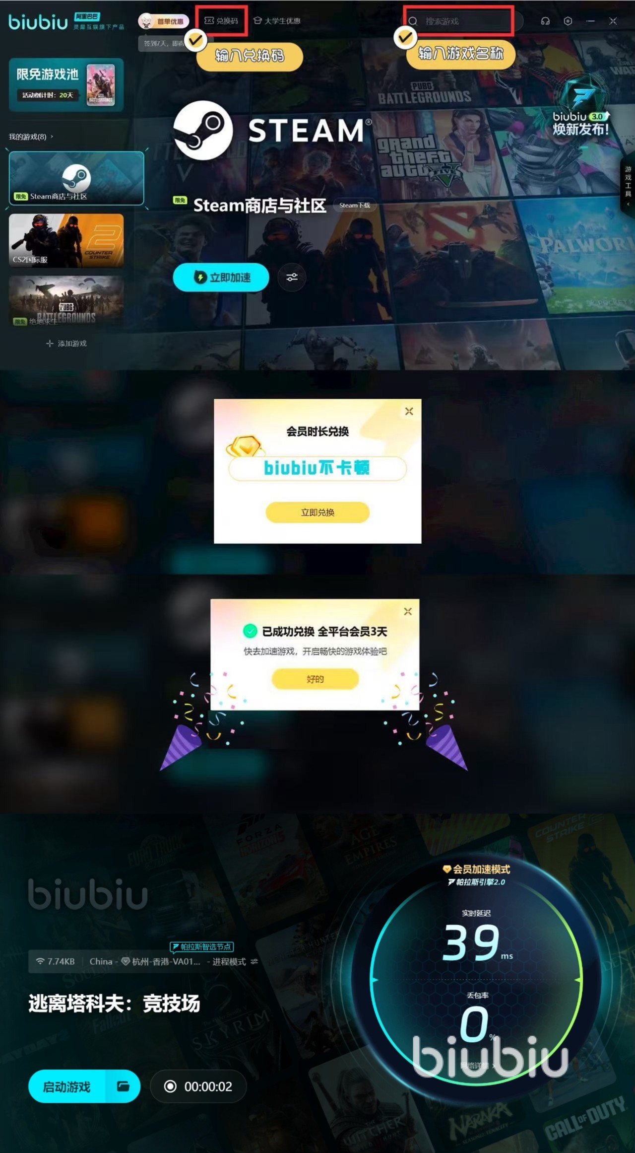 想要好好的玩一次紧张刺激的射击fps游戏的话,可不要错过这个游戏。在最后在给玩家们介绍下怎么在biubiu上领取加速福利的过程: