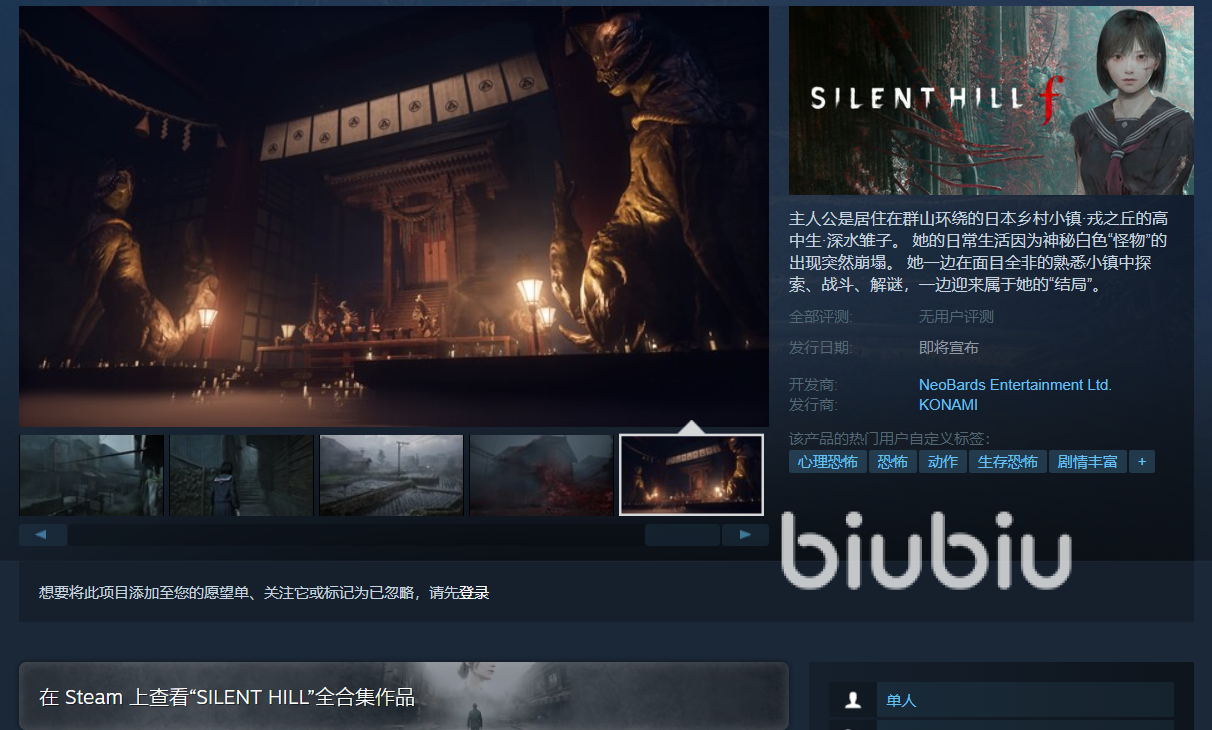 想流畅游玩这个作品,推荐大家提前使用biubiu加速器。它运用帕拉斯引擎2.0,集实时多路发包、动态多线、弱网对抗技术以及全球高速专网四大黑科技于一身,可有效解决下载缓慢、频繁掉线等网络问题,保障你顺利完成购买与下载流程,享受稳定流畅的惊悚冒险体验。