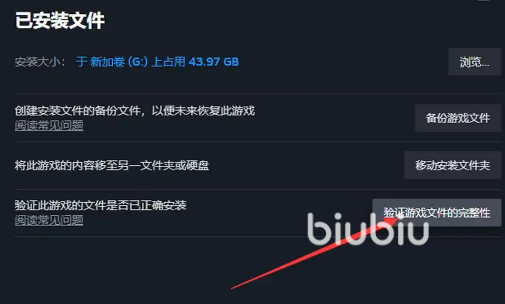 游戏文件在下载的过程中很可能会有损坏,导致游戏在运行时有黑屏闪退等问题。玩家可以验证游戏文件的完整性,等待系统去完成检查,然后修复受损的文件。
