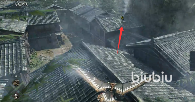 然后展开滑翔翼,飞到房顶冒烟的地方。注意下去之前,可以先走到高处,将左侧的敌人射杀,之后下房顶,利用地形或烟雾弹规避群体攻击,潜行到敌人身边刺杀。有两个高手,可以分别潜行从背后刺杀。打完后顺便房间里的物品也可以搜刮一下。