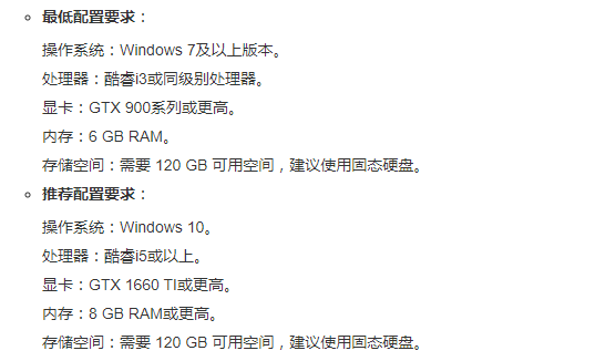大家如果只是想保证能够玩游戏,不追求画质等,用i3的处理器,还有GTX900的显卡就行了,存储空间留大一点,有120g就可以了,不过玩起来光效很差的。想要画面更好一点,I5以上的处理器,GTX1660以上的显卡就行了,当然越高越好的。
