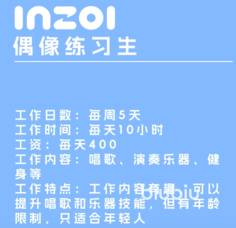 偶像练习生可是很多人喜欢干的,虽然工资低了点,但是每天唱歌跳舞,还有机会出道的,不过有年龄限制,建立角色的时候要注意下。