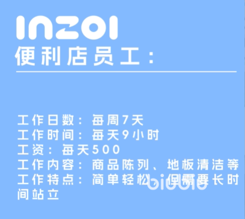 便利店员工是比较好做的职业,简单轻松但是需要长时间站立,每天工作9小时,每天500元,一周工作7天。