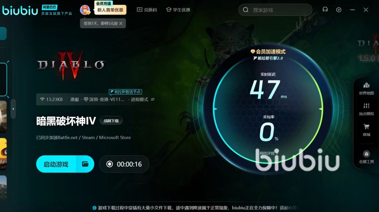各位在用的时候不要忘记领取福利了,我们完成注册之后,biubiu就送新手专属的3小时服务时间了,然后用下【biubiu不掉线】吧,这个会给新老用户继续送来额外的72小时服务时长的,综合下来最后给我们的新人用到的就是75小时了。