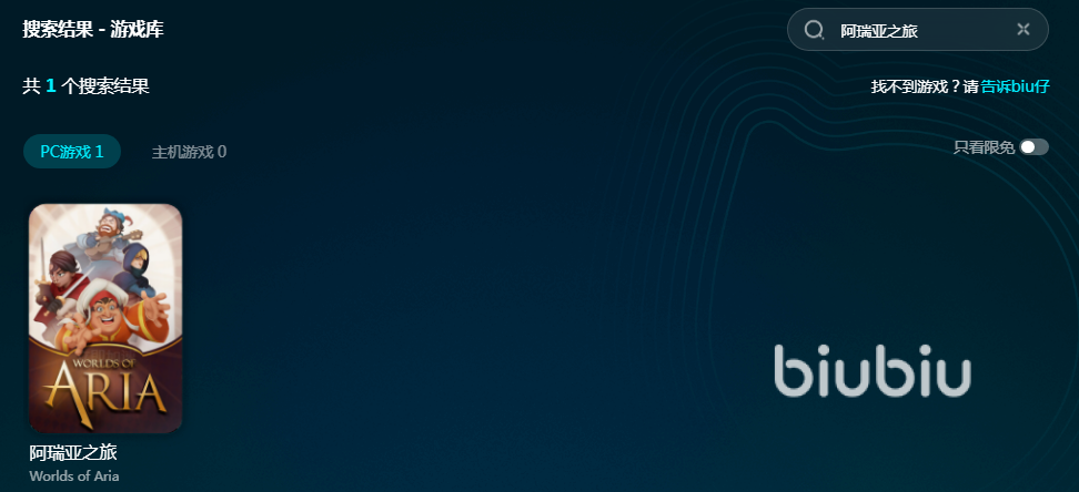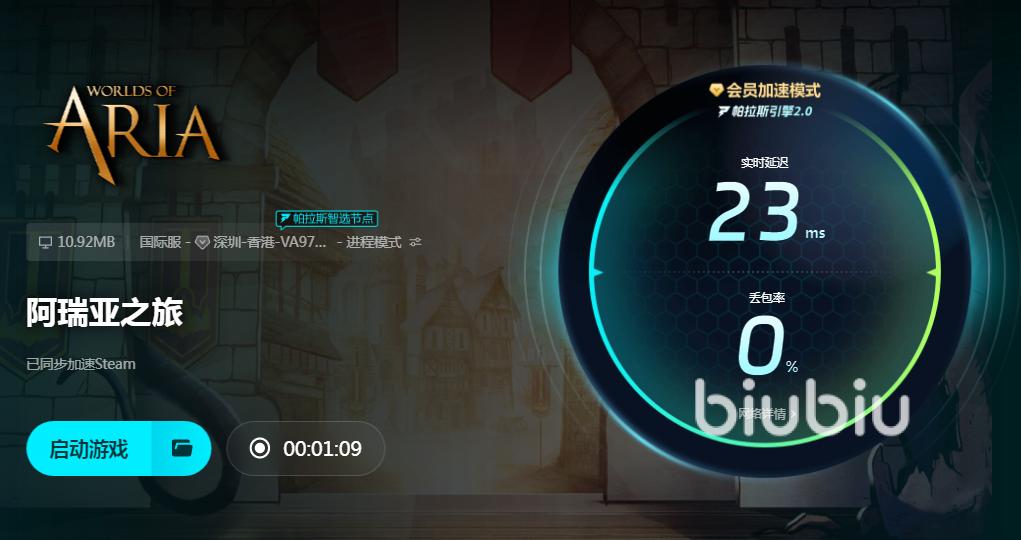 需要下载biubiu的只要点击上面的按钮就会跳出下载链接了,新用户注册完成立马获得3小时免费加速,可以利用免费加速的机会来直接下载阿瑞亚之旅。搜索游戏名就能找到加速资源,加速成功以后网速还会同步到steam上,大家玩游戏就不担心会卡顿了。