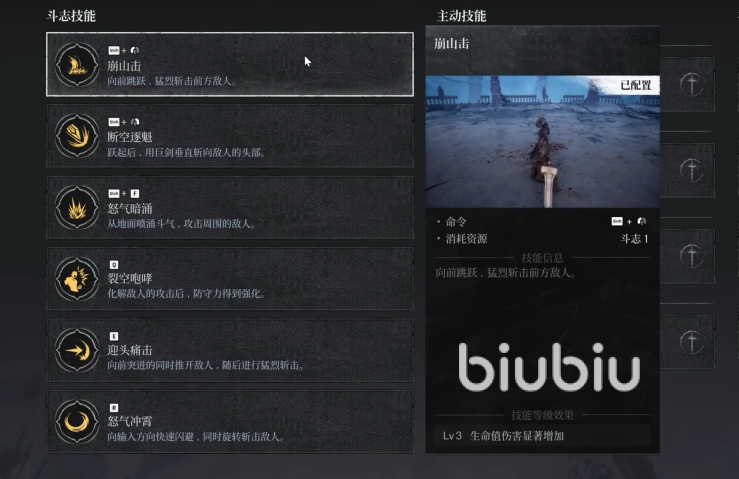 前期伤害是比较高的,但是中后期发展比较缓慢,后期可能会感觉力量不足。崩山击是最基础的攻击手段,等升级之后就可以搭配可蓄力攻击过度前期。等技能点多了之后,点高反手蓄力然后搭配大横扫二连,伤害高而且动作也帅气,力量感十分充足的。中后期有血剑,怒气爆发之后,能够弥补一些伤害不足的问题。