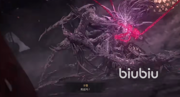 剧情推进到最后,我们就见到最终的boss,那就是奥兹玛,在剧情对话完成之后,奥兹玛使用鬼神之力变身,右手握剑。怪物体型变大了还是比较好观察的,一般抬手之前是有个微微后退的动作,然后用剑竖劈再横劈,躲过之后就是我们上前进攻的时机。当怪物双脚离地,有微后退的动作,就代表他要投掷了,躲过即可。要是挽剑花,就是要发射类似激光炮一样的攻击。这些都躲掉,在其停顿的时候输出,很快就能打完第一阶段。