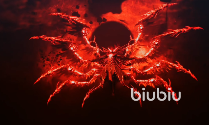 打完之后进入动画,他继续强化一下,长出来翅膀,头上角也更多了。落地之后抬手的同时,同侧翅膀也会跟着攻击,距离还挺远的,注意后撤步躲过。当他翅膀微微收起来就是我们攻击的时候,要是打出来连击是可以击退他的。当怪物升起到半空中的时候,翅膀旁边就会有圆珠,像眼球一样,对我们发射攻击,然后还会召唤龙卷风,这两个速度都不快。躲好技能等间隙进攻就行了,很快第二条血又被打没了。