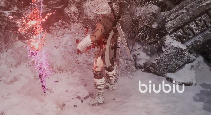 我们直接来到打熊的任务点,首先会遇到两个小怪,运用远程攻击是较为稳妥的策略。远程攻击可以在保证自身安全的前提下,对小怪造成有效伤害,逐步消耗它们的血量。待看到熊出现后,切勿盲目冲动地正面攻击,可以慢慢绕到熊的后方,寻找时机进行偷袭,成功绕后,蓄力重击一次或两次,重击能对熊造成可观的伤害,但也要注意把握好时机和节奏。