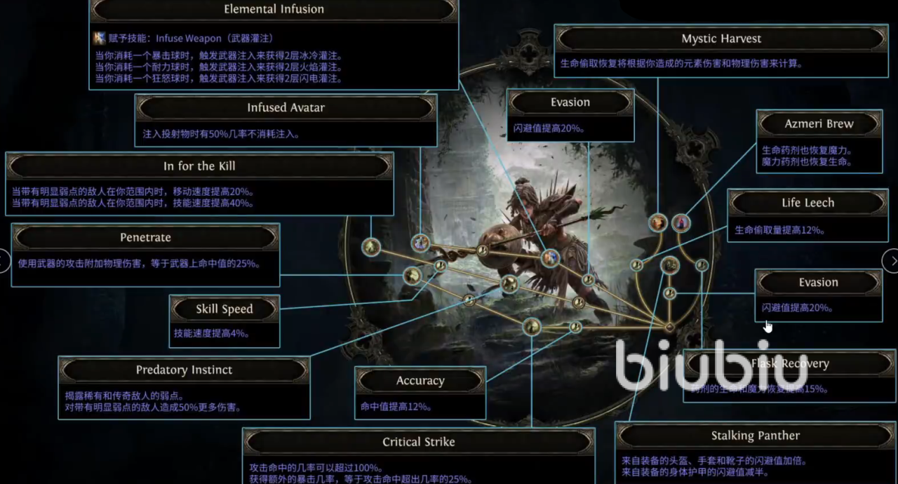元素转化:通过“武器灌注”天赋将武器命中值转化为物理伤害(命中值500→+125点基础物理伤害)。