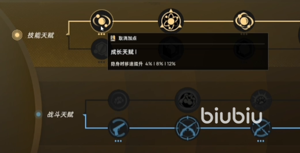 看外观我们就知道了,这是狐狸,她的技能天赋大家点的时候注意点,首先第一个要选择隐身时加移速,开大用滑铲会跑的特别快。