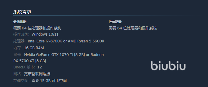 为了满足游戏的内存需求,玩家需要至少16 GB的RAM,较大的内存容量能够有效减少游戏加载时间,提升整体运行效率。在显卡方面,游戏要求使用GTX 1070 Ti(8 GB)或与之相匹敌的其他品类也是可以的。