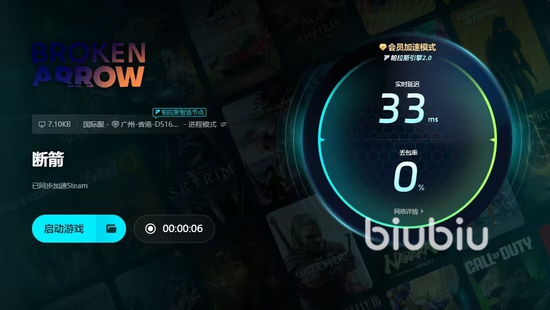 专业的电竞级游戏加速工具,拥有卓越的加速能力和稳定的加速效果,深受老玩家们的喜爱。它还提供了免费试用的福利,为了让每一位用户都能畅享丝滑无阻的网络体验,我们特别推出优惠活动:您只需输入专属兑换码【biubiu不卡顿】,即可解锁为期3天的免费加速服务。不仅如此,新注册用户还将额外获赠24小时的加速时长,累计可享长达96小时的免费加速福利。在此期间,您可以全身心沉浸于断箭世界中的激烈战事,无需为网络卡顿或连接中断而烦恼。