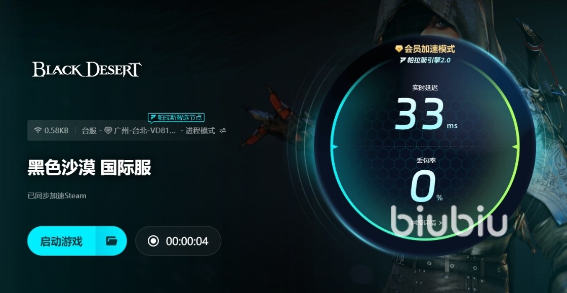 好了,以上便是黑色沙漠加速器的全部内容了,在大家的实际游戏体验过程中,若是发现实际的网络延迟很高,或者是画面出现了打不开等情况,那么去提前选用biubiu来帮自己还是很合适的,各位喜欢抓紧去点击文中链接来安装吧。