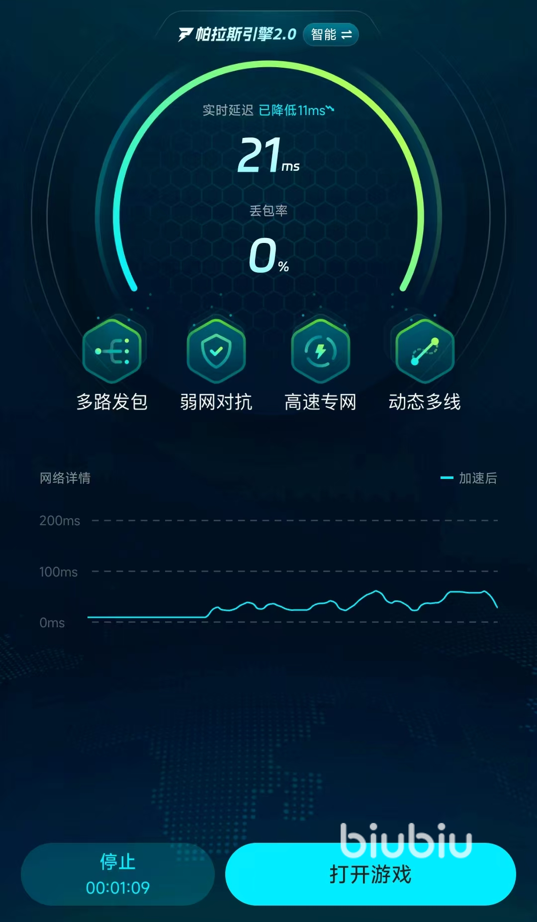 黑色信标在挑战部分boss副本的时候,由于boss的血量比较高,所以一场战斗可能需要维持2到3分钟,但是部分玩家玩起来延迟非常高,导致打斗的时候总是衔接不上连招,直接被boss一套连招带走,导致一个boss要打几十分钟,打起来是非常折磨的,而延迟问题的造成基本上以网络问题为主,那么最好的解决方法便是使用biubiu加速器,可以直接降低游戏的整体延迟,保持比较低的延迟供玩家们放心游玩,并且在biubiu只需要看视频就能领取免费的加速时长哦!