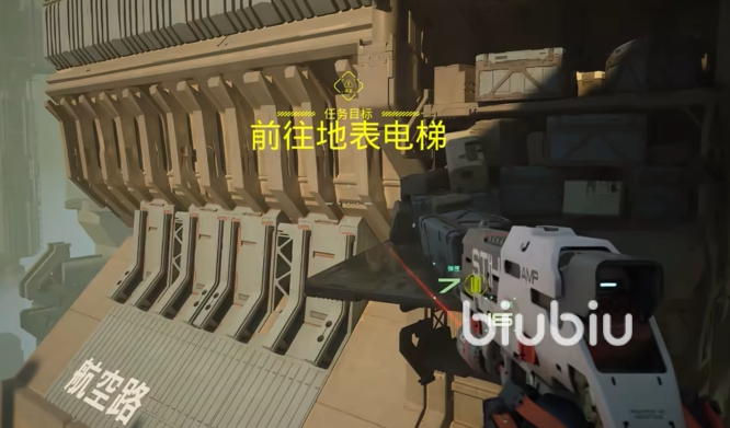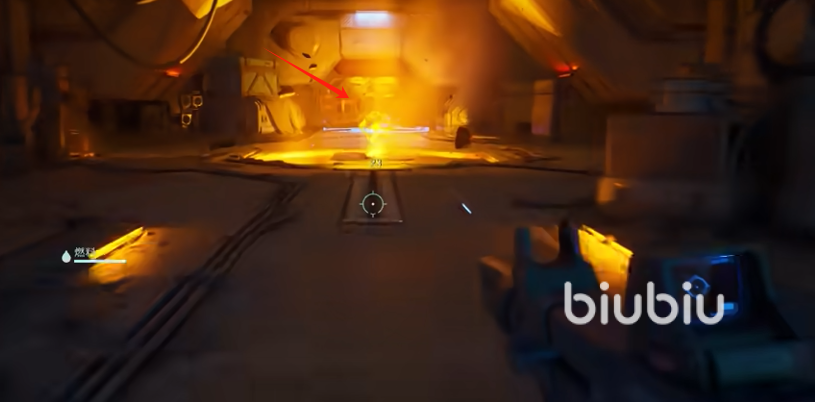 找到墙壁写了灵的地方进行跳跃,就可以跳到电梯上面,然后进入电梯平台,进入后是有怪物的,地面以及集装箱上面都有,用手中武器进攻,然后根据提示继续往前。