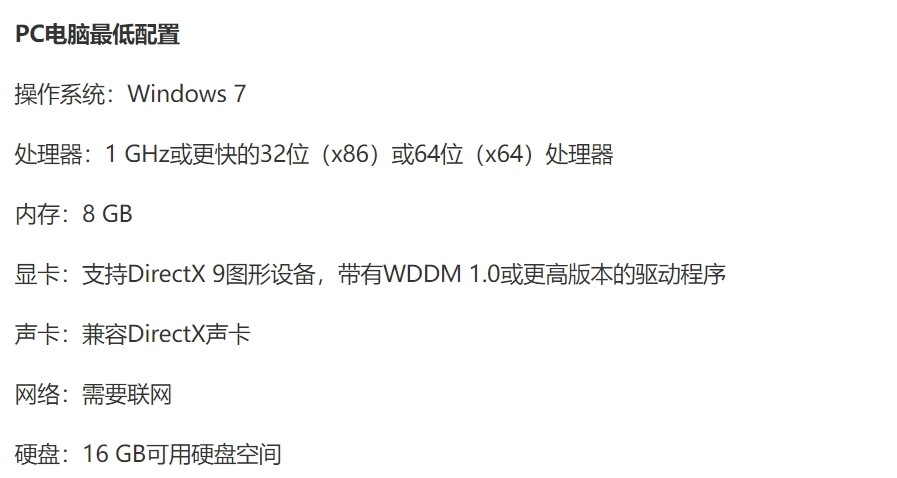 更快的32位(x86)或64位(x64)处理器,8GB的内存是目前大多数游戏的标配,足以确保游戏在运行时的流畅性。显卡支持DirectX 9图形设备,带有WDDM 1.0或更高版本的驱动程序,兼容DirectX的声卡可以确保游戏中的音效和背景音乐能够正常播放,提升整体的沉浸感。16GB的存储空间对于代号界来说已经足够。
