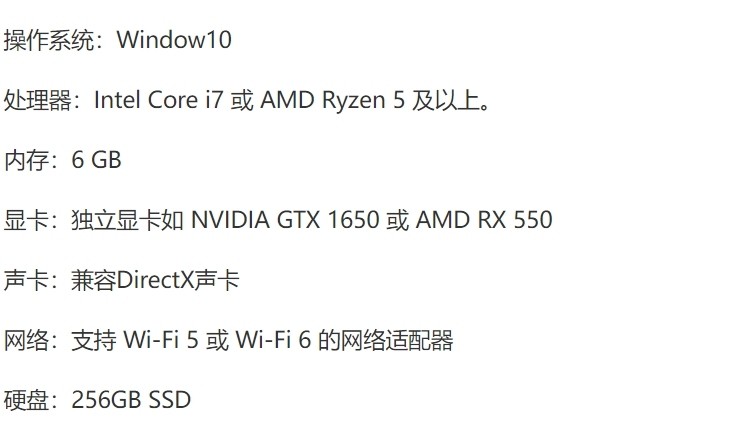 推荐配置需要Windows10或更高版本,处理器 i7或AMD Ryzen 5或更高性能处理器,内存虽然与最低配置相同,但8GB的内存对于推荐配置来说仍然是一个合理的标准,足以应对大多数游戏场景。显卡英伟达1650或者AMD RX 550,同时需配备支持DirectX的声卡,以确保游戏音效的优质输出。存储空间256GB SSD,SSD的读写速度远高于传统硬盘,能够显著减少游戏的加载时间,提升整体体验。