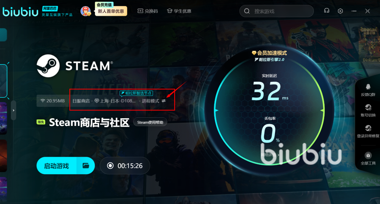 尽管游戏即将发售了,但也要注意,是锁国区的哦,因此大家需要移步到日去区购买,但许多中国玩家在裸连的时候都是打不开steam的,更不用说其他服了,而想要打开日服的steam,有一个很简单的方法,那就是用上biuibiu加速器,搜索steam进行加速,然后点击下方的节点,切换到日服就可以了。