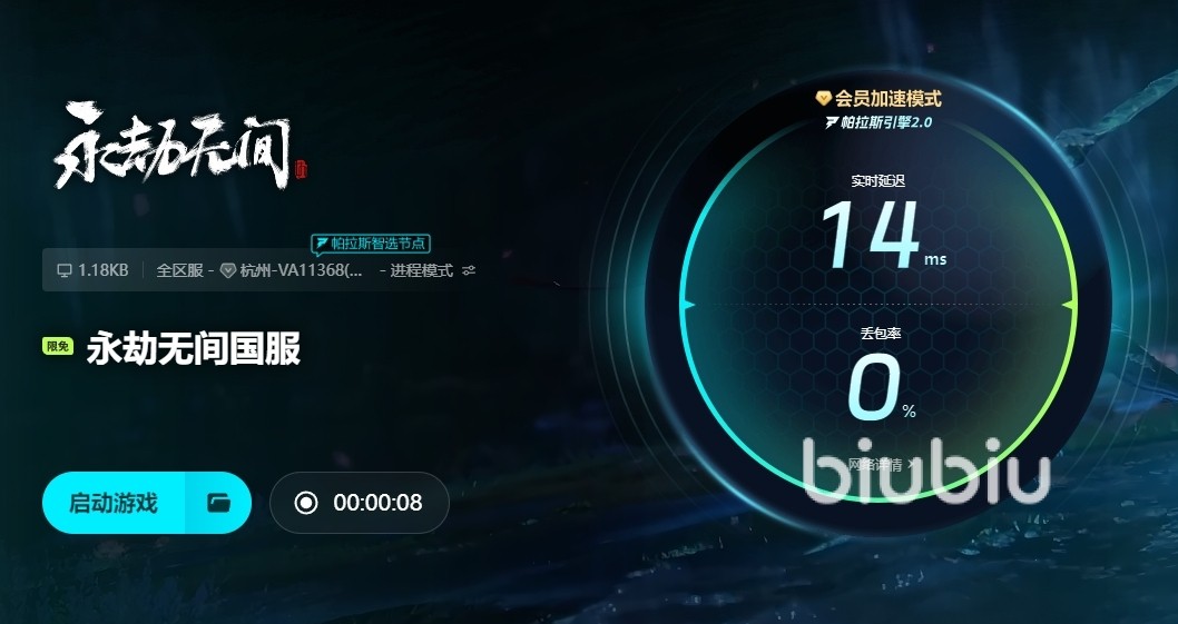 大家要知道的是,其本身便是款针对用户网络环境要求严苛的多人在线竞技作品,如果大家到时候的网络不够稳定,会遇到各种网络问题严重影响了游戏体验,因此,强烈推荐大家选用biubiu来优化,这款软件采用了先进的专线网络优化技术,专为永劫无间这类在线作品去进行数据传输方面的优化,帮助小伙伴们去有效降低延迟,提供稳定的网络加速效果。