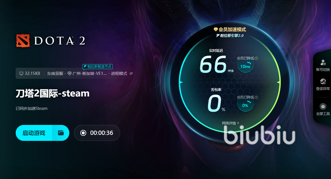 好了,上述便是dota2加速器的全部内容了,对于那些想让自身网络稳定的朋友而言,去提前打开biubiu这类工具来帮自己稳定就很重要,它的多线路传输以及自动匹配切换节点功能,能让玩家长时间体验阶段也不用担心会有卡顿。