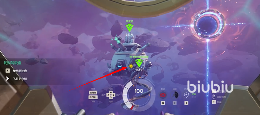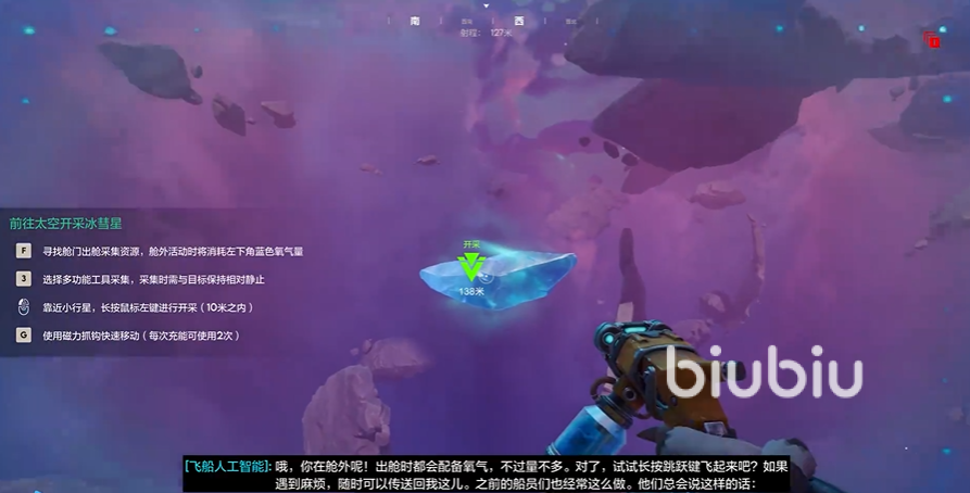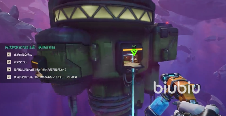 资源采集:通过爪钩(右下角显示,最多使用两次后需充能)采集冰彗星(用于修复飞船)或红色彗星(提供燃料)。按C键可传回飞船,F键放置资源至指定位置(如燃料舱或反应堆)。