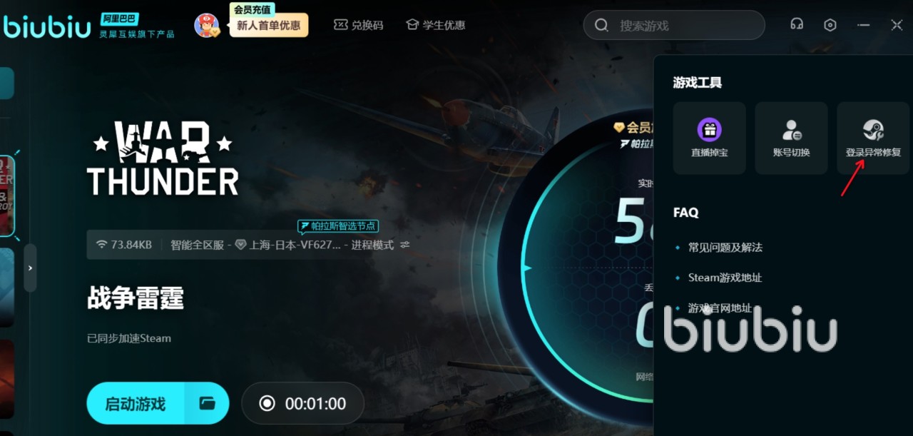 总之,用biubiu能帮我们处理大部分网络烦恼,如果尝试了以上方法问题仍未解决,还可以到加速页面上找到右边栏的工具箱中,找到【常见问题及解法】FAQ,以寻求进一步帮助。希望这些方法能帮助玩家顺利启动《战争雷霆》,重新享受游戏带来的乐趣。